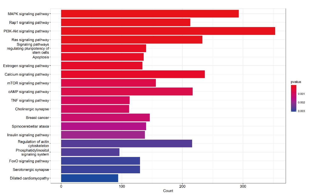 目的 探讨氢气通过肿瘤坏死因子样细胞因子1A(tumor necrosis factor-like cytokine 1A,TL1A)/死亡受体3(death receptor 3, DR3)通路对兔肢体缺血-再灌注后心肌细胞凋亡的影响。 方法 下载基因表达数据库(gene expression omnibus, GEO)GSE160516数据集,进行基因组百科全书(kyoto encyclopedia of genes and genomes, KEGG)通路富集。采用随机数字表法将18只雄性新西兰大耳白兔随机分为对照组(C组),肢体缺血-再灌注组(R组),氢气组(H组),每组6只。建立兔双后肢缺血-再灌注模型,各组动物取静脉血离心制备血清,摘取心脏。酶联免疫吸附试验(enzyme-linked immunosorbent assay, ELISA)法检测血清TL1A和DR3水平。终端脱氧核苷酸转移酶UTP介导的缺口端标记(terminal deoxynucleotidyl transferase UTP mediated nicked end labeling, TUNEL)法检测心肌细胞凋亡率。免疫印迹(western blotting)法测定心肌组织中TL1A、DR3与半胱氨酸天冬氨酸蛋白酶3(Caspase3)蛋白相对表达量。实时逆转录聚合酶链反应(real-time reverse transcription polymerase chain reaction, RT-qPCR)测定心肌组织中TL1A、DR3与Caspase3 mRNA相对表达量。 结果 KEGG通路富集分析发现,小鼠心肌缺血-再灌注后,基因表达富集在Apoptosis信号通路、TNF信号通路和MAPK信号通路等。实验观察到,与C组比较,R组血清TL1A和DR3表达水平显著升高(P < 0.01);与R组比较,H组血清TL1A和DR3表达水平显著降低(P < 0.01)。与C组比较,R组心肌细胞凋亡率显著升高(P < 0.01);与R组比较,H组心肌细胞凋亡率显著降低(P < 0.01)。与C组比较,R组心肌组织内TL1A、DR3和Caspase3蛋白与mRNA相对表达量均显著升高(P < 0.01);与R组比较,H组心肌组织内TL1A、DR3和Caspase3蛋白与mRNA相对表达量均显著降低(P < 0.05,P < 0.01)。 结论 氢气可通过抑制TL1A/DR3通路减轻肢体缺血-再灌注后心肌细胞凋亡。