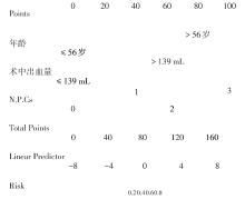 目的 探究采用新型炎症复合评分系统,建立列线图模型预测腰椎骨折患者术后谵妄的风险。 方法 选取2020年6月至2022年12月我院收治并进行手术治疗的251例腰椎骨折患者为研究对象,根据患者情况将其分为术后谵妄组(n = 55)和无谵妄组(n = 196)。记录两组患者的临床资料并进行单因素分析;ROC曲线分析指标对腰椎骨折患者术后谵妄的预测价值;logistic回归分析术后谵妄的独立危险因素并构建列线图模型,校正曲线对模型进行内部验证,计算一致性指数(concordance index, C-index),决策曲线评估模型预测效能。 结果 两组患者在年龄、手术时间、术中出血量、炎症反应标志物NLR、PLR、CAR方面的差异有统计学意义(P < 0.05)。年龄、手术时间、术中出血量、NLR、PLR、CAR的AUC分别为0.788、0.714、0.797、0.824、0.839、0.811;构建N.P.Cs评分标准,其AUC为0.963。年龄、术中出血量、N.P.Cs是影响腰椎骨折患者术后谵妄的独立危险因素。列线图预测模型的校正曲线与原始曲线及理想曲线接近,C-index为0.847(95% CI:0.811 ~ 0.903);列线图预测模型的阈值> 0.17,可提供临床净收益。 结论 年龄、术中出血量、N.P.Cs是影响腰椎骨折患者术后谵妄的独立危险因素,基于此构建的列线图预测模型可为腰椎骨折患者术后谵妄的防治提供指导。