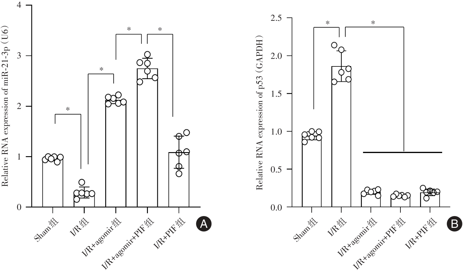 miR-21-3p/p53信号通路对缺血/再灌注损伤小鼠的肾脏保护作用及其机制