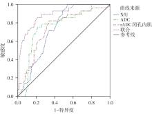 目的 探讨子宫内膜癌(EC)肿瘤体积与子宫体积比值(N/U)联合肿瘤表观扩散系数(ADC)值对EC病理分级的预测价值。 方法 回顾性分析2020年7月至2023年1月收治的107例EC患者的资料,所有患者术前均进行了磁共振(MRI)检查,将病理学诊断作为金标准。将低分化患者纳入高级别组,中、高分化纳入低级别组。分析影响EC患者病理分级的因素,分析MRI指标预测EC患者病理分级的价值。 结果 手术病理检测显示高级别患者24例,低级别患者83例。Logistic多因素回归分析显示:N/U、ADC、rADC闭孔内肌是影响EC患者病理分级的因素( P < 0.05)。ROC曲线结果显示,N/U、ADC、rADC闭孔内肌及三者联合预测EC患者病理分级的灵敏度分别为70.83%、75.00%、79.17%、83.33%,特异度分别为71.08%、79.52%、78.31%、85.54%,AUC分别为0.734、0.756、0.741、0.891。 结论 N/U、ADC、rADC闭孔内肌三者联合预测EC患者术前病理分级效能良好。
