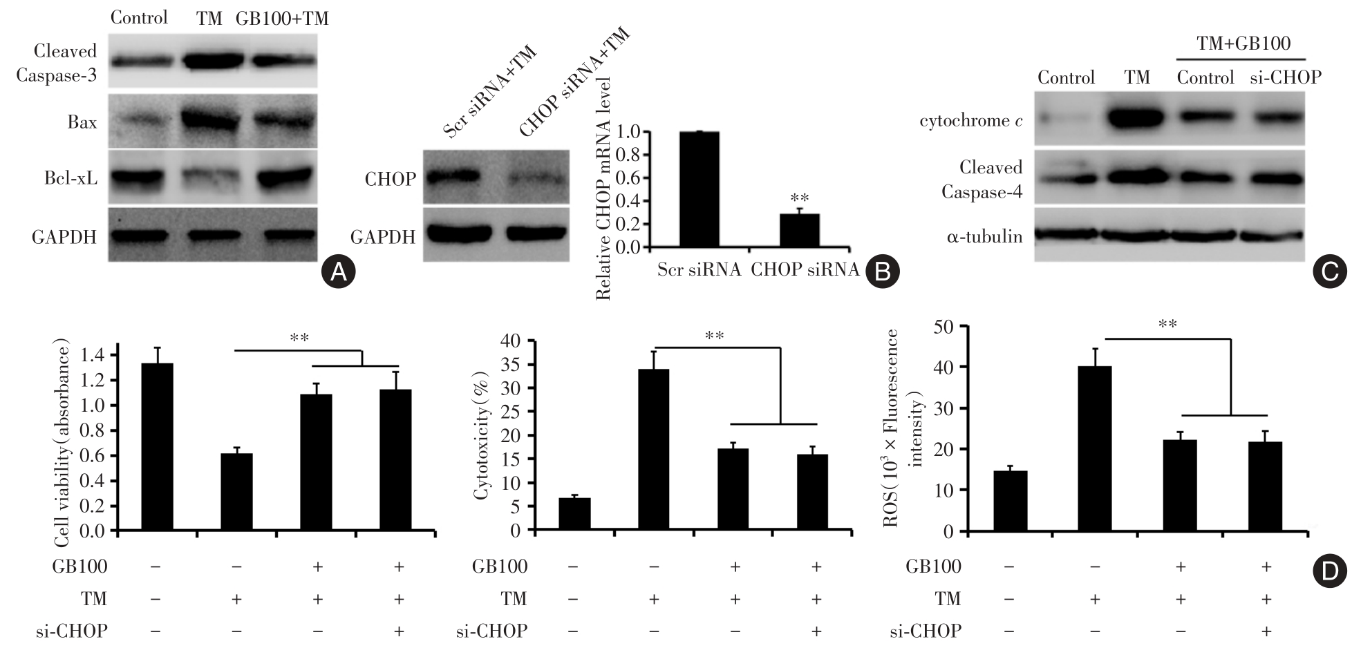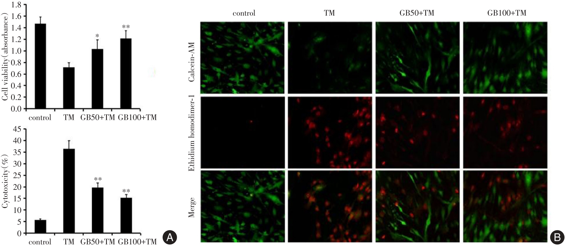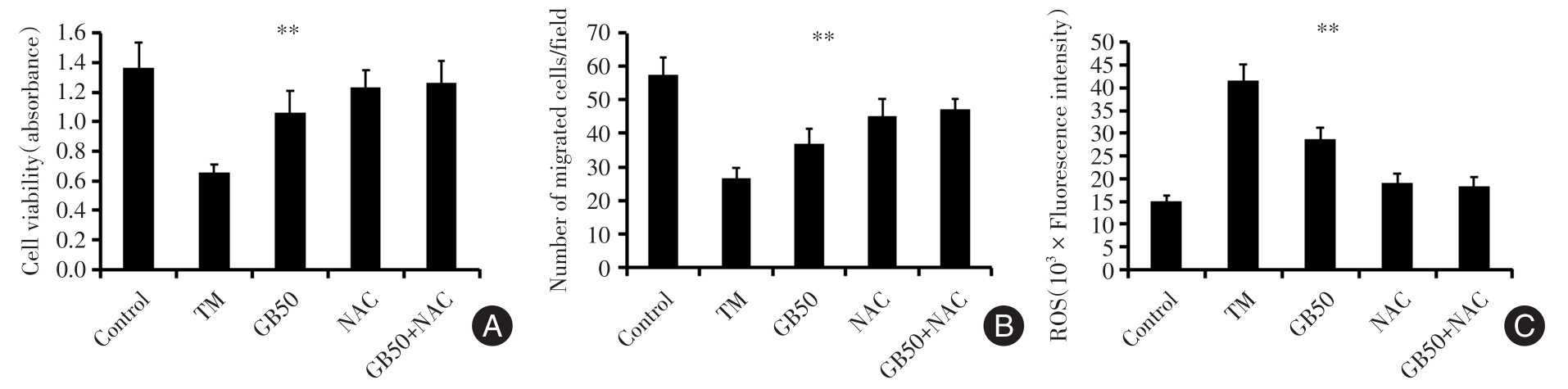 目的 探究银杏内酯B(ginkgolide B, GB)是否通过拮抗内质网应激(endoplasmic reticulum stress, ERS)发挥其拮抗血管内皮损伤作用及其相关分子机制。 方法 建立衣霉素(tunicamycin, TM)诱导的人骨髓来源内皮祖细胞(bone marrow derived-endothelial progenitor cells, EPCs)ERS损伤模型,用MTS检测细胞增殖能力;Calcein-AM/EthD-I双染法检测细胞活性状态;Transwell实验检测细胞迁移能力;DCFH-DA染色检测活性氧(reactive oxygen species,ROS)的水平;ELISA法测定NADPH活性;JC-1和DiOC6染色定性和定量检测线粒体膜电位;qRT?PCR检测mRNA的水平;Western Blot检测蛋白表达水平。 结果 GB浓度依赖性减轻衣霉素对hEPCs造成的ERS内皮损伤(细胞活性、细胞迁移率和血管形成率的降低)(P < 0.01);降低ROS及NADPH水平(P < 0.01);呈浓度依赖性抑制ERS介导的线粒体膜电位下降(P < 0.01);抑制ERS相关蛋白(GRP78、ATF4、CHOP等)表达,并调控细胞凋亡相关蛋白(Bcl-xl、Bax、cleaved caspase-4、cytochrome c)的表达水平,拮抗内质网应激介导的细胞损伤。 结论 银杏内酯B能通过拮抗内质网应激,发挥血管内皮保护作用,其机制可能与降低细胞内活性氧水平,抑制ERS相关蛋白(CHOP, GRP78、ATF4)表达及调节细胞凋亡蛋白(Bcl-xl、Bax、cleaved caspase-4、cytochrome c)的表达水平有关。