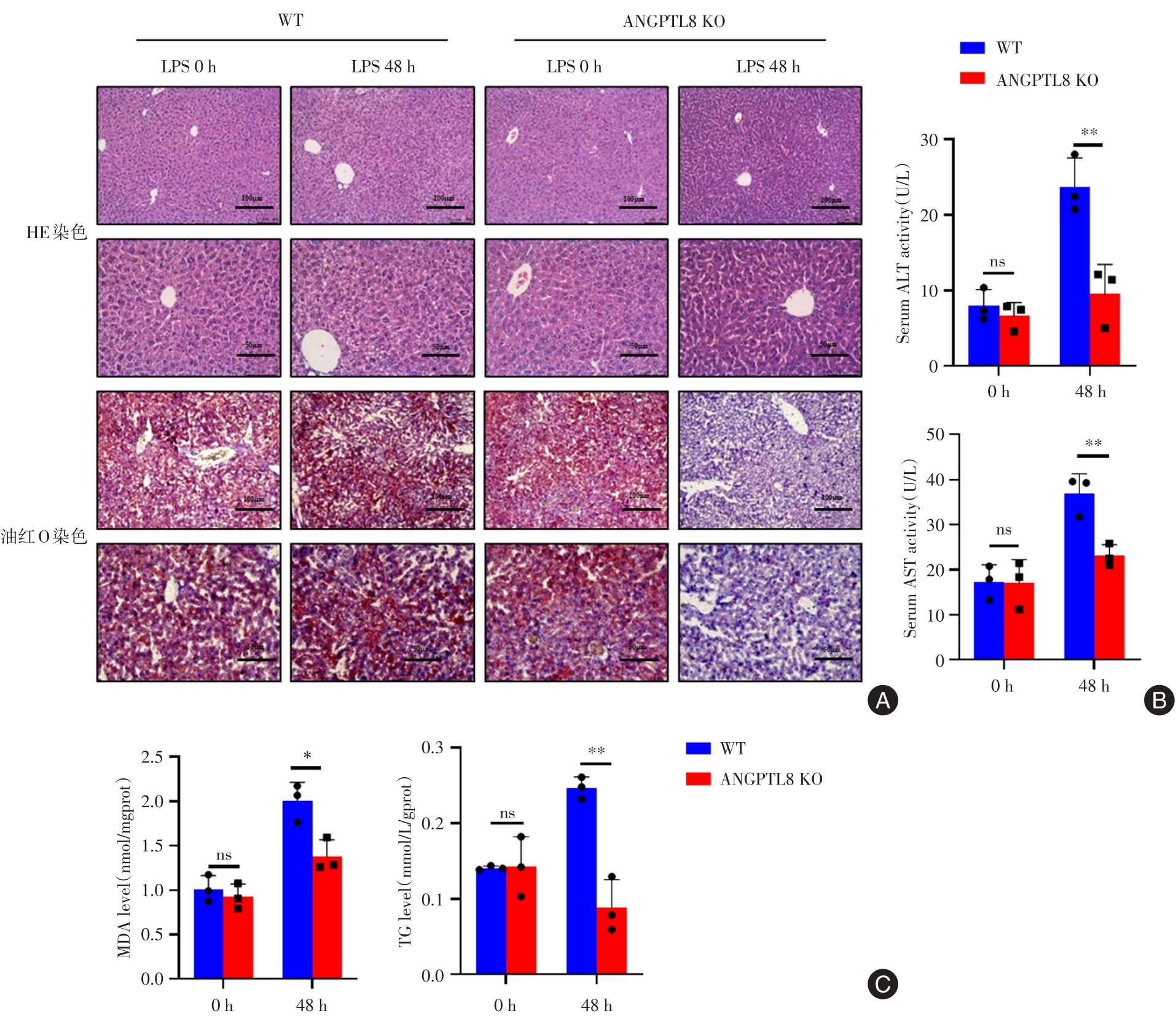 血管生成素样蛋白8敲除减轻脂多糖诱导的肝脏脂质沉积