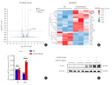 目的 探索血管生成素样蛋白8(ANGPTL8)在脂多糖(LPS)诱导的肝脏脂质沉积中的作用及机制。 方法 选取6 ~ 8周雄性野生型和ANGPTL8 敲除小鼠,通过腹腔注射LPS(10 mg/kg)诱导脓毒症小鼠模型。荧光定量PCR(qPCR)检测肝脏组织和免疫荧光检测HepG2细胞中ANGPTL8的表达;分别用谷丙转氨酶(ALT)、谷草转氨酶(AST)、甘油三酯(TG)和丙二醛(MDA)试剂盒检测血清ALT、AST水平及肝脏组织TG、MDA含量;HE染色观察肝脏组织的病理变化;油红O染色分析肝组织脂滴形成;TUNEL检测肝细胞凋亡;RNA-seq分析肝脏组织差异表达基因,并通过qPCR及Western blot进一步验证差异基因。 结果 LPS刺激小鼠48 h后,肝脏ANGPTL8明显上调;与野生型小鼠相比,ANGPTL8敲除小鼠肝脏脂质沉积、脂肪变性和细胞凋亡显著减轻,血清中ALT、AST以及肝脏TG、MDA的水平显著降低;ANGPTL8敲除可上调LPS诱导的肝脏中小窝蛋白1(CAV1)的表达。 结论 LPS促进肝脏组织ANGPTL8的表达和分泌,ANGPTL8通过抑制CAV1促进肝脏脂质沉积和过氧化,从而加剧LPS诱导的肝脏脂质沉积。