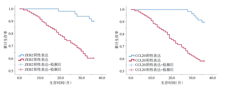 脑胶质瘤组织ZEB2、CCL20表达及其与患者预后的相关性