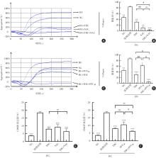 目的 旨在通过体外实验探讨姜黄素的主要代谢活性产物四氢姜黄素(tetrahydrocurcumin,THC)对高糖(high glucose,HG)诱导人血小板聚集和活化的作用及机制。 方法 将溶剂对照(0.05% DMSO)或THC(0.5、1、10 μmol/L)与健康人来源的纯化血小板在体外共同孵育40 min,随后加入Normal glucose(NG,5 mmol/L)或HG(25 mmol/L)溶液继续作用90 min后,使用血小板聚集仪测定血小板的最大聚集率,并利用流式细胞术评估血小板经典活化标志物CD62P的表达情况以及胞内总活性氧(Reactive oxygen species,ROS)生成水平。同时,通过Western blot蛋白免疫印迹实验检测血小板p53蛋白的磷酸化水平。 结果 与NG组相比,HG干预可显著增加血小板聚集(P < 0.05)和CD62P的表达(P < 0.001),且可被不同浓度的THC显著抑制(P < 0.05)。机制上,与溶剂对照组相比,THC显著降低HG诱导的血小板内总ROS 生成水平(P < 0.001),显著下调p53蛋白磷酸化水平(P < 0.05);此外,通过加入ROS清除剂N-乙酰半胱氨酸(N-acetylcysteine,NAC),观察到HG诱导的血小板内总ROS生成(P < 0.001)以及p53蛋白的磷酸化水平(P < 0.05)均显著降低,进一步将其与THC(10 μmol/L)联合使用时并未观察到协同抑制效果(P > 0.05)。HG诱导的血小板聚集和活化均可被NAC和p53特异性抑制剂PFT-μ显著抑制(P < 0.05),THC(10 μmol/L)与NAC联合干预时对HG诱导血小板聚集和活化无协同抑制作用(P > 0.05),与PFT-μ联合干预时对血小板聚集具有协同抑制作用(P < 0.05),但对血小板活化无协同抑制作用(P > 0.05)。 结论 在体外实验中,THC对HG诱导的健康人血小板聚集与活化具有显著的抑制作用,其作用机制可能是下调ROS/p53介导的信号通路,本研究为THC改善糖尿病及其相关慢性代谢性疾病中血栓形成提供参考。