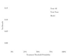 目的 探讨精神分裂症共患心血管疾病影响因素,并构建列线图模型。 方法 回顾性收集2023年6月至2024年10月医院586例精神分裂症患者临床资料,包含100例共患心血管疾病,486例未共患心血管疾病,分别设为共患组(n = 100)和非共患组(n = 486),采用倾向性评分匹配法(PSM)降低组间偏倚。统计两组临床资料、心电图参数[经心率校正的QT(QTc)、经心率校正的Tp-Te间期(TP-Tec)]、犬尿氨酸(KYN)代谢物[色氨酸(TRP)、KYN、犬尿喹啉酸(KYNA)],采用logistic回归方程筛选精神分裂症共患心血管疾病影响因素,构建列线图模型并验证。 结果 (1)BMI、吸烟、饮酒、睡眠障碍、QTc、TP-Tec、TRP、KYN、KYNA均是精神分裂症共患心血管疾病的高危因素(P < 0.05);(2)列线图模型诊断AUC为0.876,诊断结果与观察结果之间具有较好一致性;阈概率为5% ~ 100%时,患者净获益率较高。 结论 基于QTc、TP-Tec、TRP、KYN、KYNA等构建的列线图模型有助于提高精神分裂症共患心血管疾病诊断价值,指导临床诊治,降低心血管疾病。