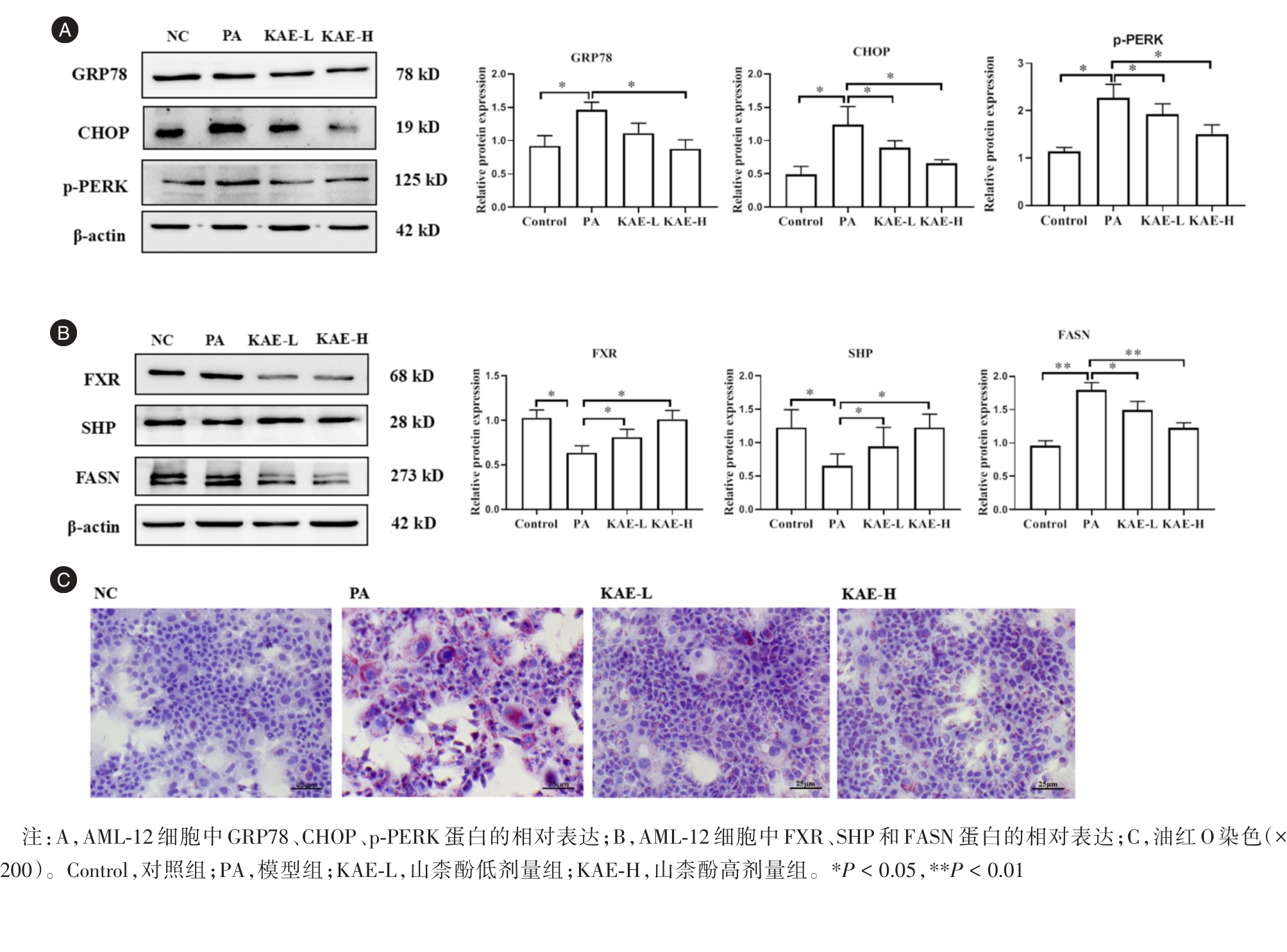 WANG H, CHEN L, ZHANG X, et al. Kaempferol protects mice from d-GalN/LPS-induced acute liver failure by regulating the ER stress-Grp78-CHOP signaling pathway[J]. Biomed Pharmacother, 2019, 111:468-475. doi:10.1016/j.biopha.2018.12.105