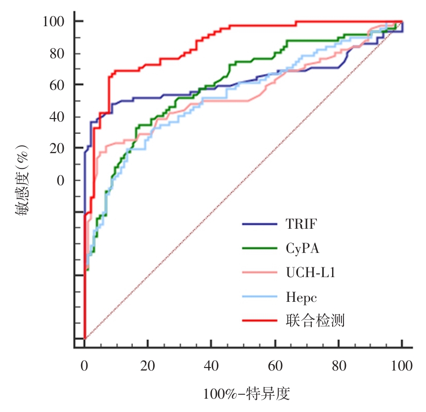 TRIF、CyPA、UCH-L1、Hepc联合检测对早产儿脑损伤的早期诊断价值