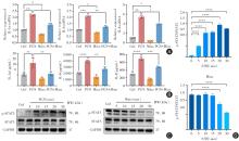 目的 探讨米诺环素通过调控过氧化物酶体增殖物激活受体γ(PPARγ)信号通路在抑制痤疮炎症中的作用机制。 方法 采用体内外实验。体内构建痤疮丙酸杆菌(C. acnes)诱导的痤疮样小鼠模型,给予米诺环素或无菌水灌胃,观察皮损并行苏木精-伊红(HE)、免疫组化(IHC)及免疫荧光(IF)检测炎症细胞浸润及信号通路相关因子表达。体外利用肽聚糖(PGN)刺激人皮脂腺细胞SZ95,分为对照组、PGN组、米诺环素组、PGN+米诺环素组、PPARγ抑制剂(T0070907)组及PGN+米诺环素+T0070907组。检测IL-1α、IL-1β、IL-6、IL-8等炎症因子水平及PPARγ、STAT3的表达。 结果 与无菌水组相比,米诺环素干预后小鼠皮损炎症显著减轻,炎症细胞浸润减少,PPARγ表达增强,IL-1β及MPO阳性细胞数量明显下降,同时p-STAT3阳性信号亦显著减弱(P < 0.05)。体外实验中,PGN刺激显著升高SZ95细胞炎症因子表达,米诺环素可显著降低IL-1α、IL-1β、IL-6、IL-8水平并上调PPARγ表达,抑制STAT3磷酸化;加入T0070907后,米诺环素抗炎效应部分消失。 结论 米诺环素可通过激活PPARγ信号通路,抑制炎症因子表达、减轻炎症细胞浸润,从而改善痤疮炎症。PPARγ通路在痤疮炎症调控中具有重要作用,为靶向治疗痤疮提供新的思路。