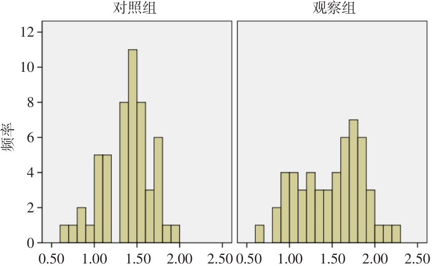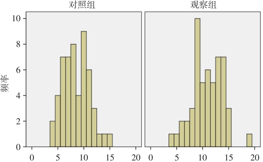 目的 基于磁共振波谱对高频重复经颅磁刺激对重症颅脑损伤后慢性意识障碍的促醒疗效进行评估分析。 方法 回顾2018年1月至2022年12月收治的106例重症颅脑损伤慢性意识障碍患者的临床资料,采用倾向性评分匹配法进行1∶1匹配。对照组接受常规康复治疗,观察组接受以M1作为刺激靶点的高频重复经颅磁刺激治疗,每组各含53例。两组治疗前后均进行头颅磁共振波谱(MRS)检查。比较两组脑代谢指标[N乙酰天冬氨酸(NAA)/肌酸(Cr)值、胆碱复合物(Cho)/Cr值]、格拉斯哥昏迷量表(GCS)评分、脑电图(EEG)分级、昏迷恢复量表(CRS-R)评分、脑干听觉诱发电位(BAEP)分级、上肢体感诱发电位(SSEP)分级及脑血流灌注指标[脑血流容积(CBV)、脑血流平均通过时间(MTT)、脑血流量(CBF)]。 结果 治疗后,两组丘脑、脑干NAA/Cr数值升高,Cho/Cr数值降低,且观察组指标水平明显优于对照组(P < 0.05);两组GCS评分、CRS-R评分均提高,且观察组改善程度优于对照组(P < 0.05);两组BAEP分级、EEG分级、SSEP分级均改善,且观察组优于对照组(P < 0.05);两组CBF、CBV均升高,MTT下降,且观察组指标水平优于对照组(P < 0.05)。 结论 高频重复经颅磁刺激对重症颅脑损伤后慢性意识障碍患者促醒效果明显,分析其作用机制可能与改善患者脑组织血流速度及脑内代谢有关。
