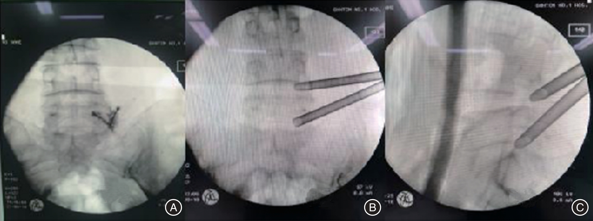 目的 探讨单一切口椎间孔镜治疗双节段腰椎管狭窄并腰椎间盘突出症的临床疗效。 方法 回顾性分析2016年3月至2018年5月在广西中医药大学第一附属医院脊柱骨伤科就诊的40例双节段腰椎管狭窄并腰椎间盘突出症患者临床资料,其中通过单一切口同时穿刺椎间孔镜治疗的患者11例(A组),通过单一切口前后穿刺椎间孔镜治疗的患者13例(B组),通过双切口前后穿刺椎间孔镜治疗的患者16例(C组)。记录患者的一般临床资料,三组不同时间点(术前、术后即刻、术后1周、术后1个月、末期随访)的VAS评分、JOA评分及临床疗效,并运用统计学进行分析。 结果 三组间手术时间、术中透视次数、皮肤切开长度和满意度差异均有统计学意义(P < 0.05);手术时间与手术方式在VAS、JOA评分上存在交互作用;手术时间、手术方式在VAS、JOA评分上存在主效应(P < 0.05);三组术后即刻、术后1周、术后1个月、末期随访与术前在VAS、JOA评分上比较差异均有统计学意义(P < 0.05);三组间术后即刻在VAS、JOA评分上差异有统计学意义(P < 0.05);三组间术后1周在VAS评分上差异有统计意义(P < 0.05)。 结论 单一切口椎间孔镜技术同时减压双节段腰椎管狭窄并腰椎间盘突出症的有效手段,具有手术时间短、术中透视少,损伤小等优势,患者满意,值得临床推广应用。