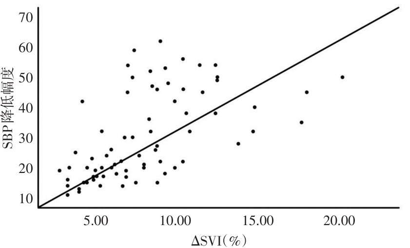 目的 探讨微容量负荷试验对老年骨科患者腰麻后低血压的预测价值。 方法 严格按照入选和排除标准筛选出行髋关节或膝关节置换的老年患者72例,均为安排蛛网膜下腔阻滞麻醉的择期手术患者。依据研究对象接受单次细针腰麻后于仰卧位状态下15 min内血压改变进行分组,参考既往文献低血压定义标准分为血压降低组(H组)和血压正常组(N组)共两组。实施细针腰麻前进行微容量负荷试验,采用无创心排血量监测仪测量每搏量指数变异度(variation of stroke volume index,ΔSVI)并记录血压及心率等循环数据的基线值。采用多因素logistic回归分析接受腰麻下行骨科关节置换手术的老年患者低血压的影响因素,绘制ΔSVI的受试者工作特征(ROC)曲线并计算曲线下面积(AUC),评价ΔSVI的预测价值。 结果 腰麻后有29例(40.27%)患者发生低血压。与N组相比,仰卧位状态下15 min内发生低血压的H组患者年龄更大,ASAⅢ级、合并高血压比例更高。分析结果显示ΔSVI是老年患者腰麻后低血压的独立影响因素。ΔSVI在≥ 0.805%时,预测腰麻后低血压的敏感度为 82.8%,特异度为81.4%,曲线下面积为0.868。ΔSVI与SBP最大降低幅度呈正相关(r = 0.562,P < 0.01)。 结论 微容量负荷试验是一种有效预测老年骨科患者腰麻后低血压的方法。