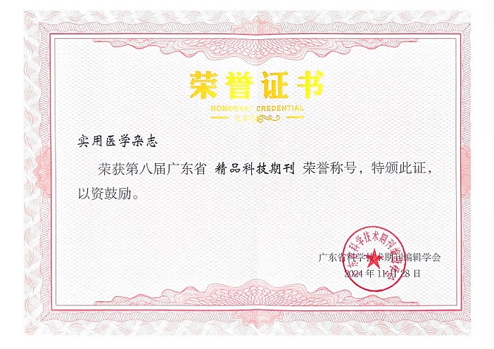 【喜讯】|《实用医学杂志》荣获第八届"广东省精品科技期刊"荣誉称号