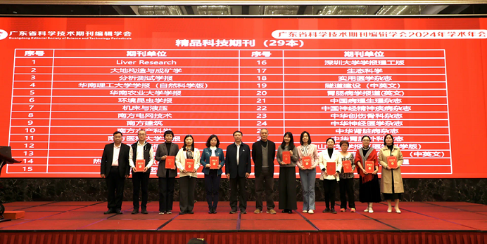•       为加强学习交流,促进广东省科技期刊的创新发展,进一步提高科技期刊的质量水平,2024年11月29日,广东省科学技术期刊编辑学会学术年会在广东鹤山召开。
