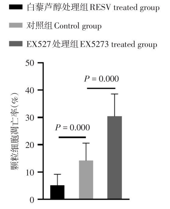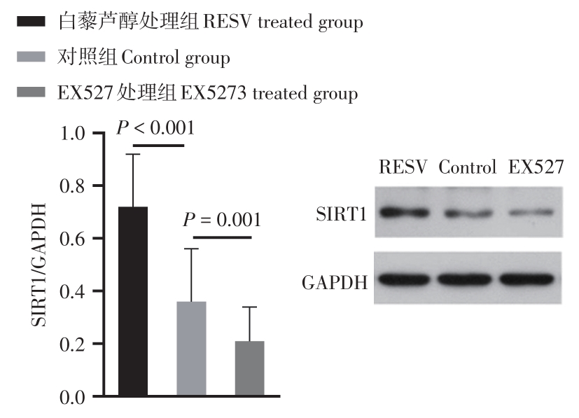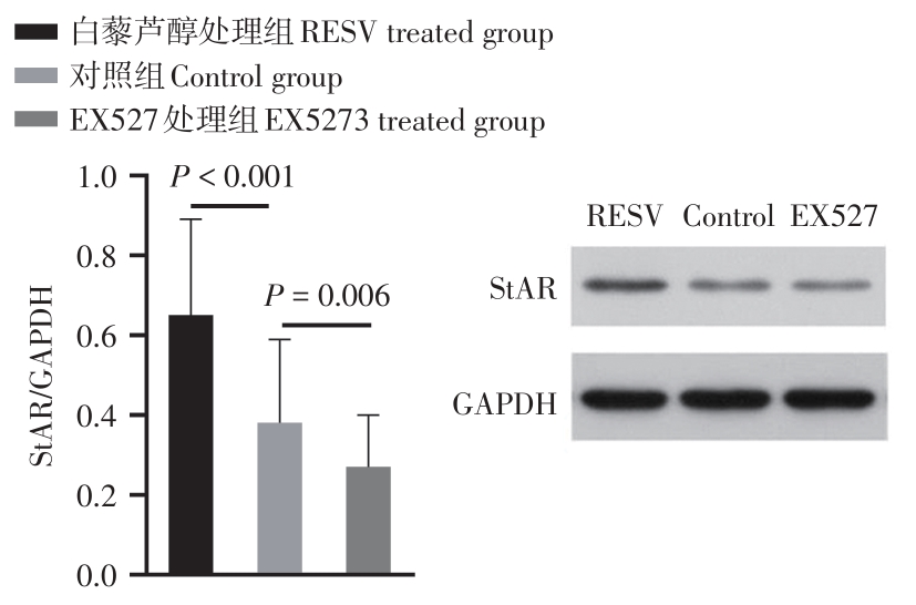 Objective To investigate the regulation of SIRT1 on ovarian granulosa cell in women with poor ovarian response. Methods A total of 60 women who underwent IVF/ICSI-ET were included in this study, 30 women in poor ovarian response (POR) group and 30 women in normal ovarian response (NOR) group. The granulosa cells in follicular fluid were isolated and purified by density gradient centrifugation. The granulosa cells of POR group were treated with SIRT1 agonist resveratrol (RESV) or inhibitor EX527, respectively, and the control group was granulosa cells treated without drugs. mRNA levels of SIRT1 and key enzymes of steroid hormone synthesis (StAR, CYP19, CYP17) in granulosa cells were detected by qPCR. The levels of SIRT1, steroid hormone synthesis key enzymes protein and apoptosis-related protein (Bcl-2, Caspase-3) in granulosa cells were detected by Western blot. The apoptosis rate of granulosa cells was detected by TUNEL method. Determination of estradiol in granulosa cell culture medium by chemiluminescence. Results The mRNA and protein levels of SIRT1 in granulosa cells in POR group were lower than those in NOR group (P = 0.003, P < 0.001). RESV up-regulated SIRT1 mRNA and protein levels (P < 0.001), up-regulated mRNA and protein levels of steroid hormone synthesis key enzyme (P < 0.05). EX527 down-regulated SIRT1 mRNA and protein levels (P = 0.023, 0.001), down-regulated mRNA and protein levels of steroid hormone synthesis key enzymes (P < 0.05). After RESV treatment, the apoptosis rate of granulosa cells was decreased (P < 0.001), the Bcl-2 protein level was increased (P < 0.001), and the Caspase-3 protein level was decreased (P < 0.001). After EX527 treatment, the apoptosis rate of granulosa cells was increased (P < 0.001), the Bcl-2 protein level was decreased (P = 0.003), and the Caspase-3 protein level was increased (P < 0.001). Conclusion The SIRT1 level in granulosa cells of POR women was lower than that of NOR women. RESV up-regulated SIRT1 expression in granulosa cells. SIRT1 inhibited granulosa cell apoptosis, increased the level of steroid hormone synthesis key enzyme, and promoted estradiol synthesis in granulosa cell. Therefore, SIRT1 activators such as RESV may be a therapeutic agent to improve ovarian reactivity and increase the number of oocytes obtained in women with POR.