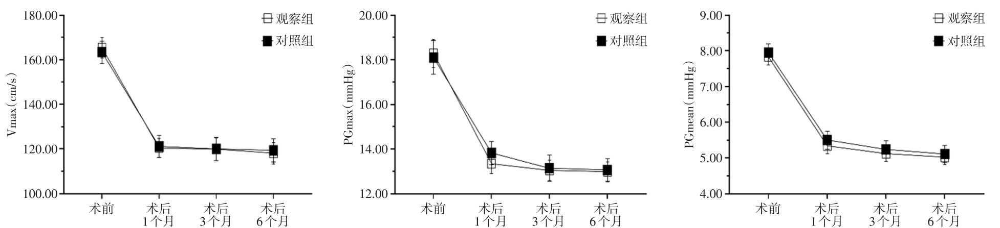 PGmean(mmHg) | 观察组(n = 84) | 7.83 ± 1.02 | 5.34 ± 1.00? | 5.12 ± 0.98? | 5.02 ± 0.93? |