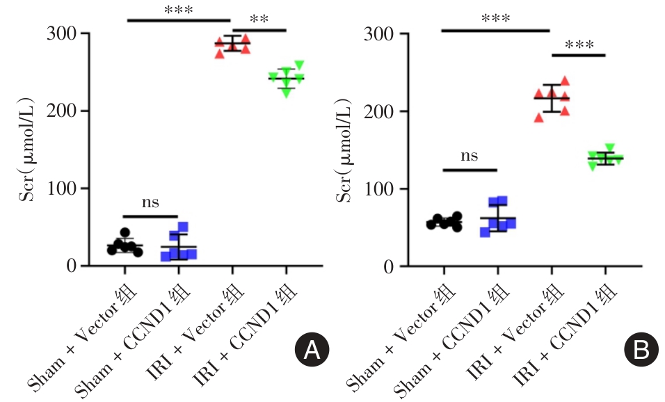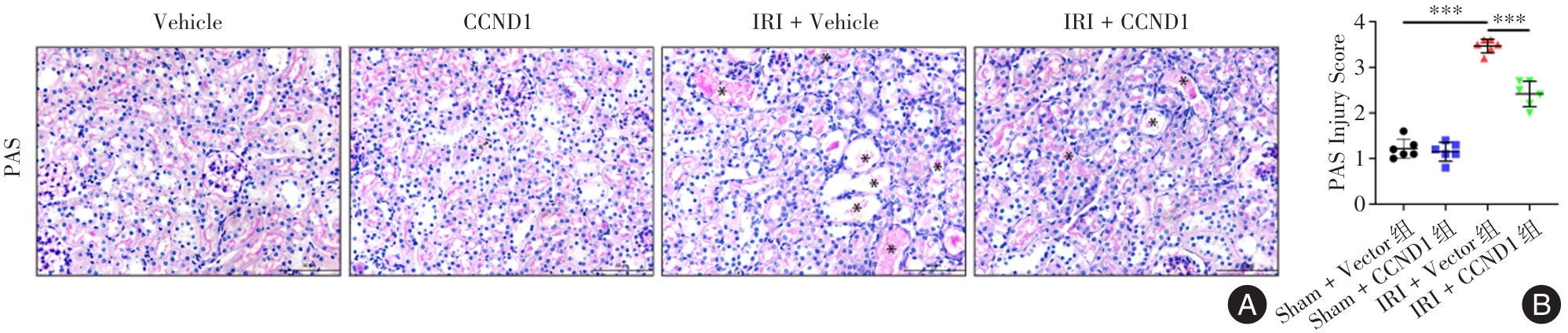 Objective To investigate the impact of CCND1 on renal ischemia?reperfusion?induced acute kidney injury through the promotion of glycolysis and elucidate its underlying molecular mechanism, thereby offering a novel therapeutic target for acute kidney injury. Methods We selected 8?week?old male C57BL/6 mice to establish a model of renal ischemia?reperfusion injury (IRI). To investigate the role of CCND1 in acute kidney injury (AKI), we employed a CCND1 overexpression plasmid and a CCND1 interference plasmid for both in vivo and in vitro experiments. Kidney function was evaluated using creatinine and urea nitrogen test kits, while glycolysis and indicators of renal tubule epithelial cell damage were assessed through quantitative real?time PCR, Western blotting, immunohistochemistry, and immunofluorescence techniques. Results In the model of renal ischemia?reperfusion?induced acute renal injury, down?regulation of CCND1 expression in renal tubular epithelial cells resulted in cellular and tissue damage. However, when an overexpression plasmid for CCND1 was administered in vivo, it significantly improved kidney function and reduced kidney injury in IRI mice. The overexpression of CCND1 promoted glycolysis, pyruvate production, and increased energy production. We further confirmed the role of CCND1 in vitro where its overexpression promoted glycolysis, enhanced energy production, and alleviated AKI. Conversely, knockdown of CCND1 inhibited glycolysis leading to severe impairment in cell energy production and exacerbation of injury. Conclusions In summary, down?regulation of CCND1 expression in renal tubular epithelial cells is observed in acute kidney injury, while overexpression of CCND1 can ameliorate acute kidney injury induced by renal ischemia?reperfusion. This mechanism may be attributed to the promotion of glycolysis and timely restoration of energy supply to cells and tissues facilitated by CCND1 overexpression.