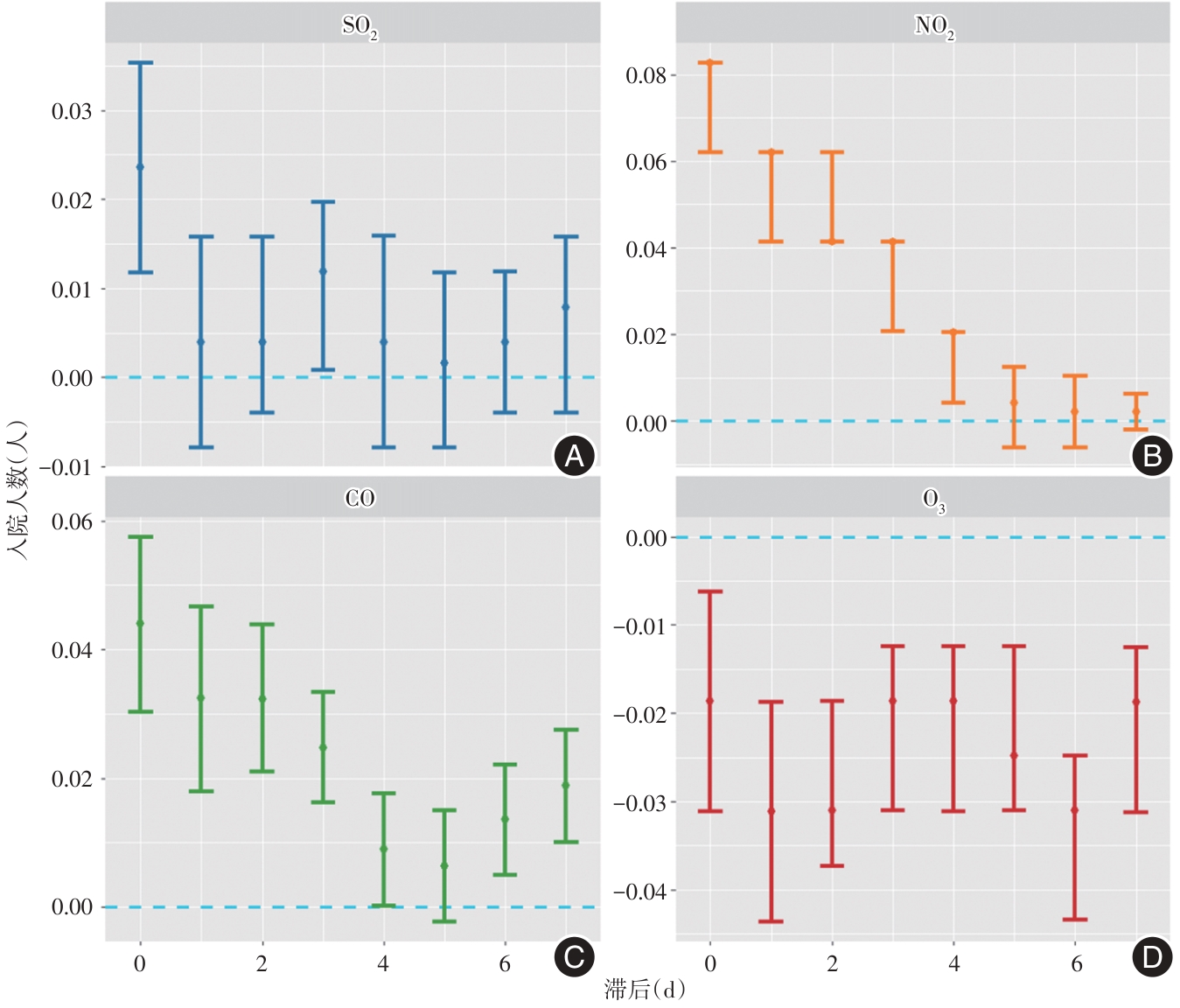 Relationship between hospital admission day pollutant concentration and hospitalization-related indicators with IQR increase(n = 2 010 905)"