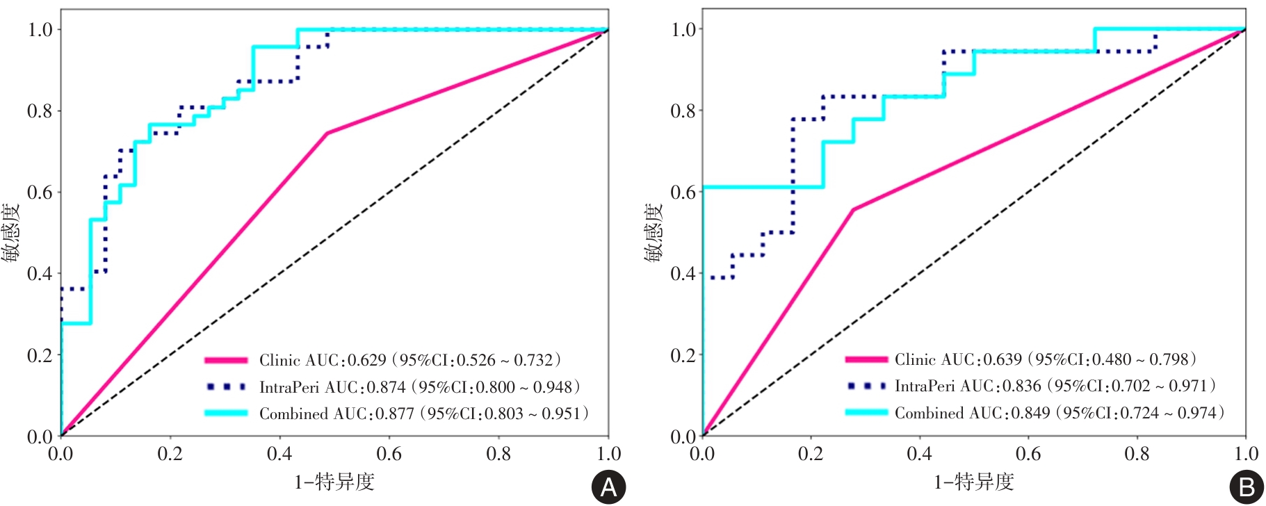 瘤内瘤周模型 | 0.786 | 0.874 | 0.801 ~ 0.948 | 0.702 | 0.892 | 0.892 | 0.702 | |