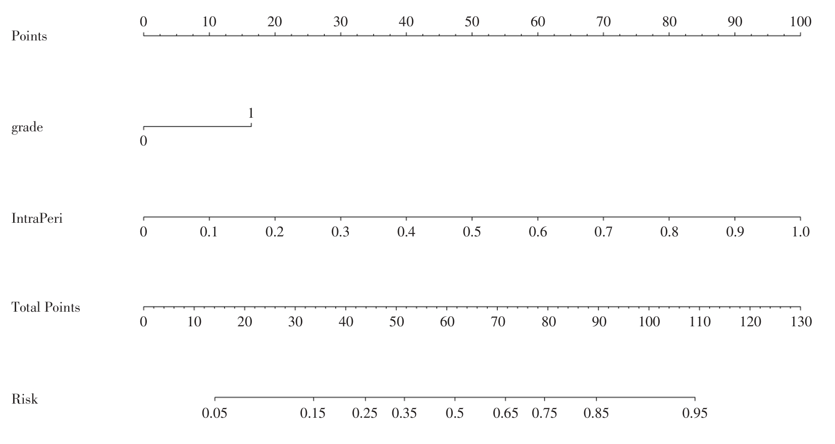 组织学分化程度 | 1.944(1.207 ~ 3.133) | 0.022 | 1.944(1.207 ~ 3.133) | 0.022 |