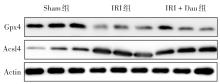 Objective To investigate whether Dauricine (Dau) can ameliorate acute kidney injury induced by renal ischemia-reperfusion (IR) in mice. Methods C57BL/6 mice were randomly assigned to three experimental groups: sham operation, ischemia-reperfusion injury (IRI), and IRI treated with daunorubicin (IRI+Dau), with 12 animals in each group. Following oral administration of Dau (15 mg/kg), renal ischemia-reperfusion was induced, and blood and kidney tissue samples were collected 24 hours post-surgery. Histopathological changes were assessed using hematoxylin and eosin (HE) staining. Renal function was evaluated by measuring serum creatinine and blood urea nitrogen (BUN) levels. Protein expression related to lipid peroxidation was analyzed using western blotting and immunofluorescence. Inflammatory gene expression was determined via quantitative polymerase chain reaction (qPCR). Nuclear translocation of nuclear factor κB (NF-κB), a key inflammatory marker, was assessed using immu-nofluorescence. Statistical comparisons between groups were performed using t-tests. Results The administration of Dau significantly ameliorated IR-induced acute kidney injury compared to the Sham group. Serum creatinine (P < 0.001) and urea nitrogen (P < 0.000 1) levels were markedly decreased in Dau-treated mice relative to those in the IRI group. Furthermore, Dau significantly suppressed lipid peroxide production in renal tissues (P < 0.001), without significantly affecting the expression levels of Gpx4 (P = 0.919) and Acsl4 (P = 0.086), two key proteins involved in lipid peroxidation. In addition, Dau effectively inhibited IR-induced nuclear translocation of NF-κB (P < 0.001) and reduced apoptosis in kidney cells (P = 0.004). Conclusion Dau mitigates IR-induced kidney damage by reducing the accumulation of lipid peroxides and inhibiting the nuclear translocation of NF-κB, thereby attenuating inflammation and renal cell apoptosis.