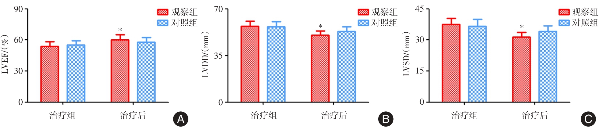 | 组别 | 例数 | LVEF/% | LVDD/mm | LVSD/mm | |||