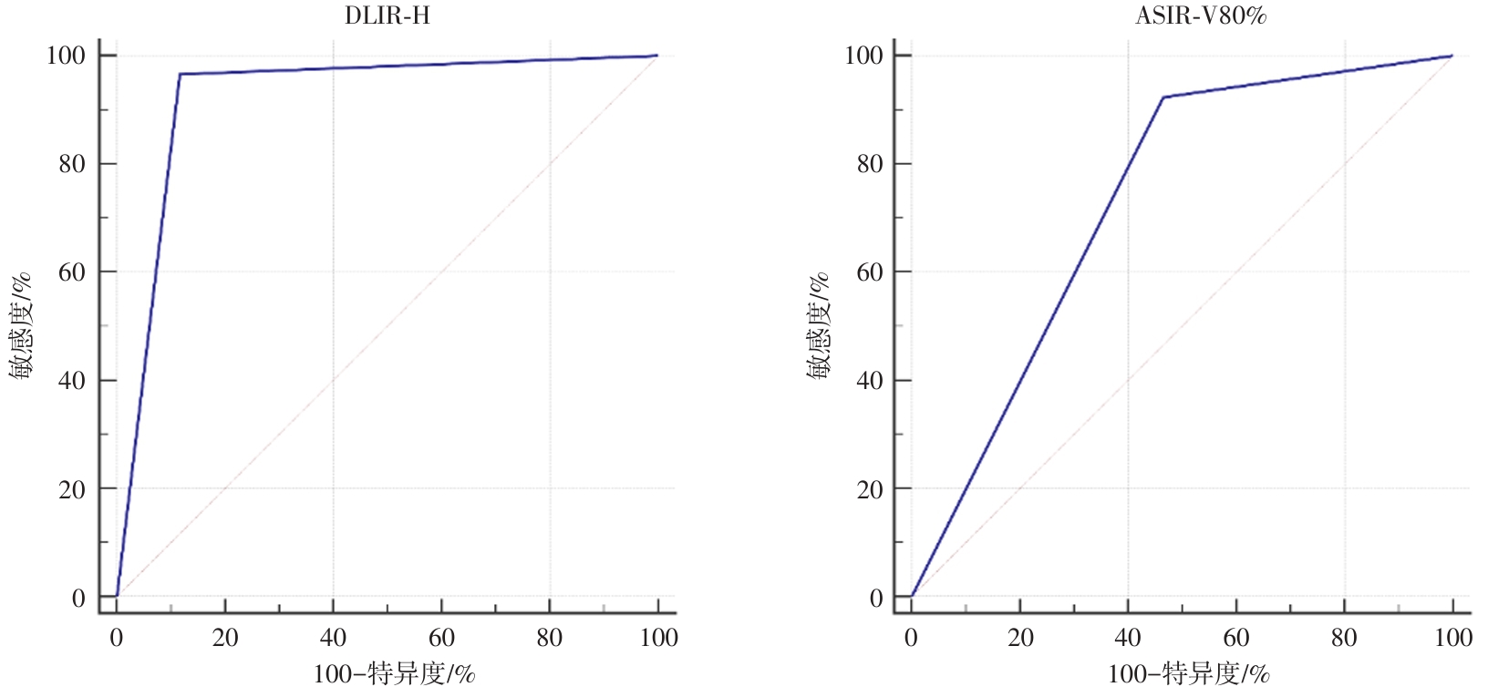 | CT征象 | DLIR-H | ASIR-V80% | χ2值 | P值 |