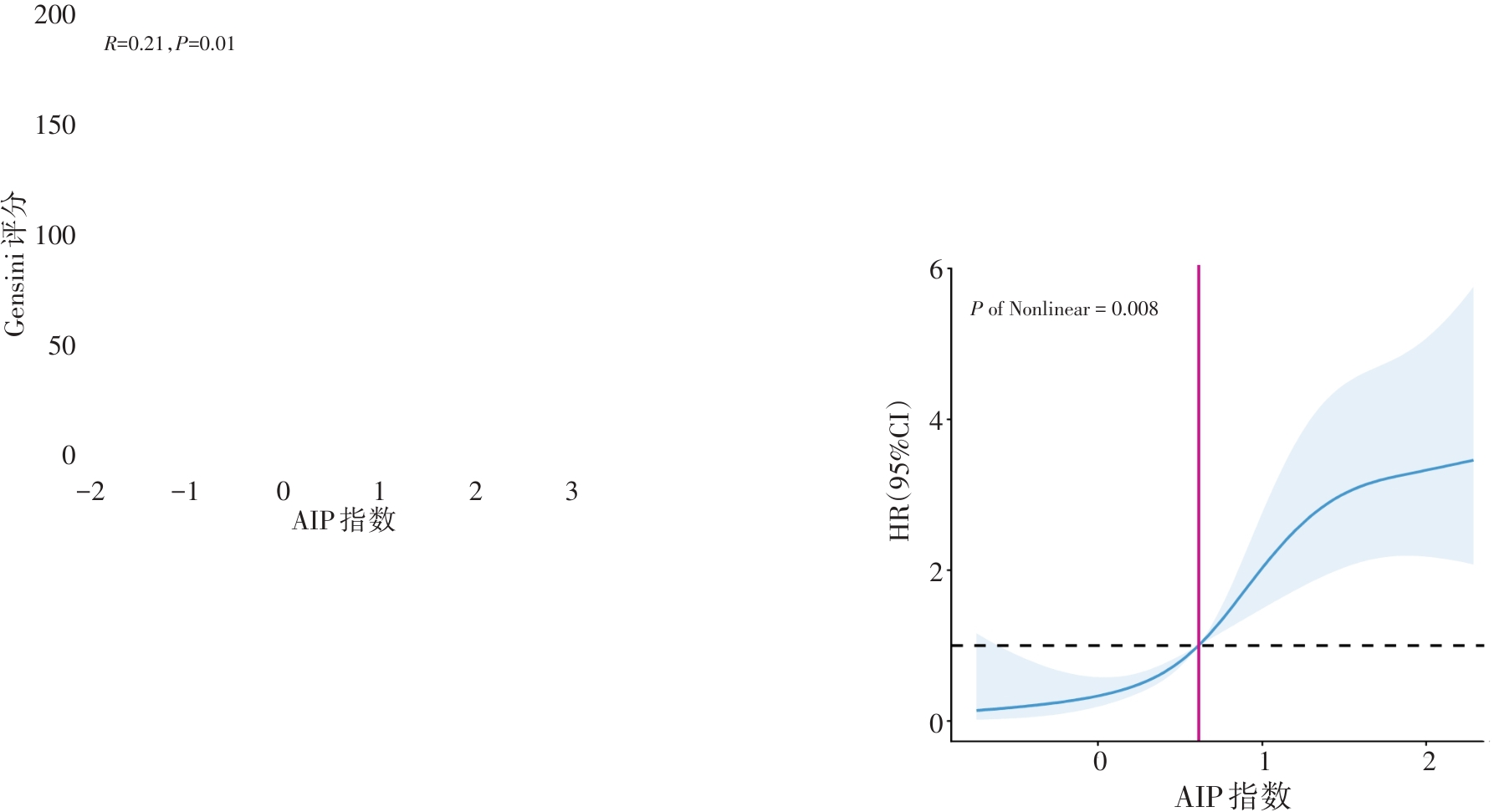 | AIP指数 | 1.534(1.181 ~ 1.992) | 0.001 | 2.024(1.211 ~ 3.381) | 0.007 |