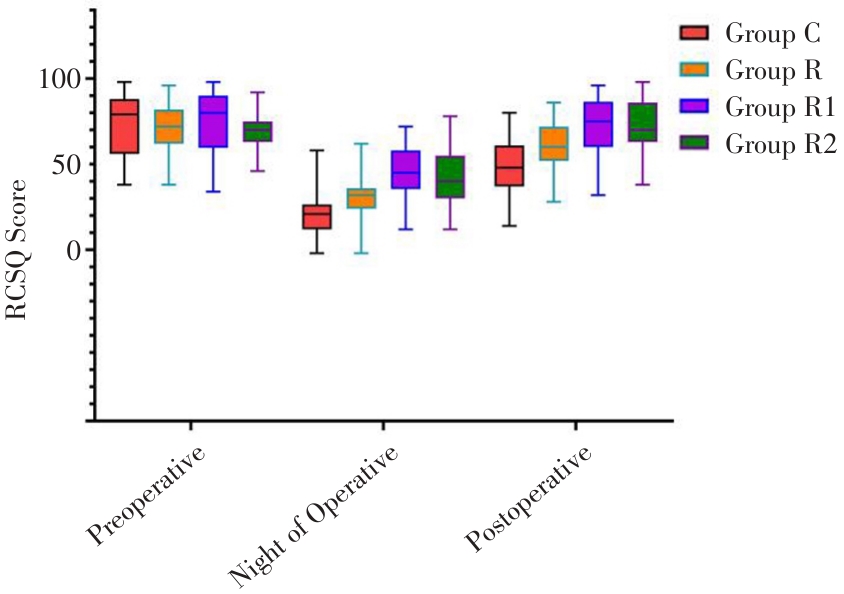 Comparison of QoR-15 score in the four groups of patients"