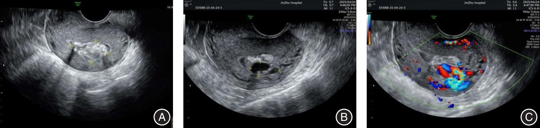 DEWILDE K, GROSZMANN Y, VAN SCHOUBROECK D, et al. Enhanced myometrial vascularity secondary to retained pregnancy tissue: Time to stop misusing the term arteriovenous malformation[J]. Ultrasound Obstet Gynecol, 2024, 63(1): 5-8. doi:10.1002/uog.27476 .