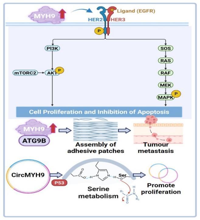 LI Y, PAN Y, YANG X, et al. Unveiling the enigmatic role of MYH9 in tumor biology: a comprehensive review [J]. Cell Commun Signal, 2024, 22(1): 417. doi: 10.1186/s12964-024-01781-w .