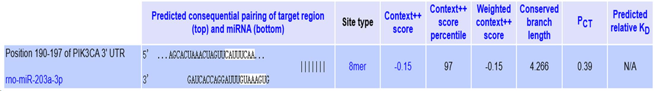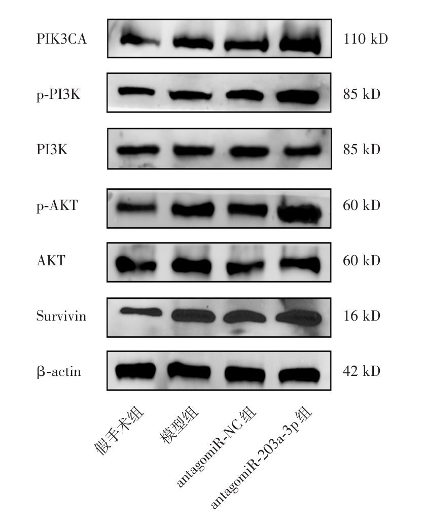 | 组别 | miR-203a-3p | PIK3CA | PI3K | AKT | Survivin |