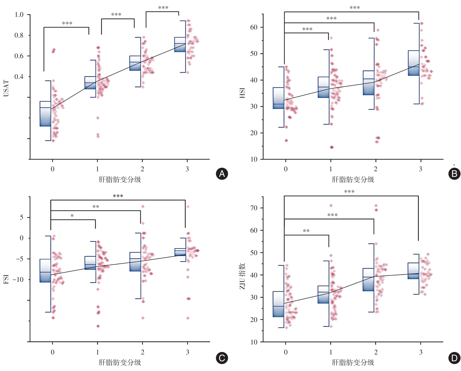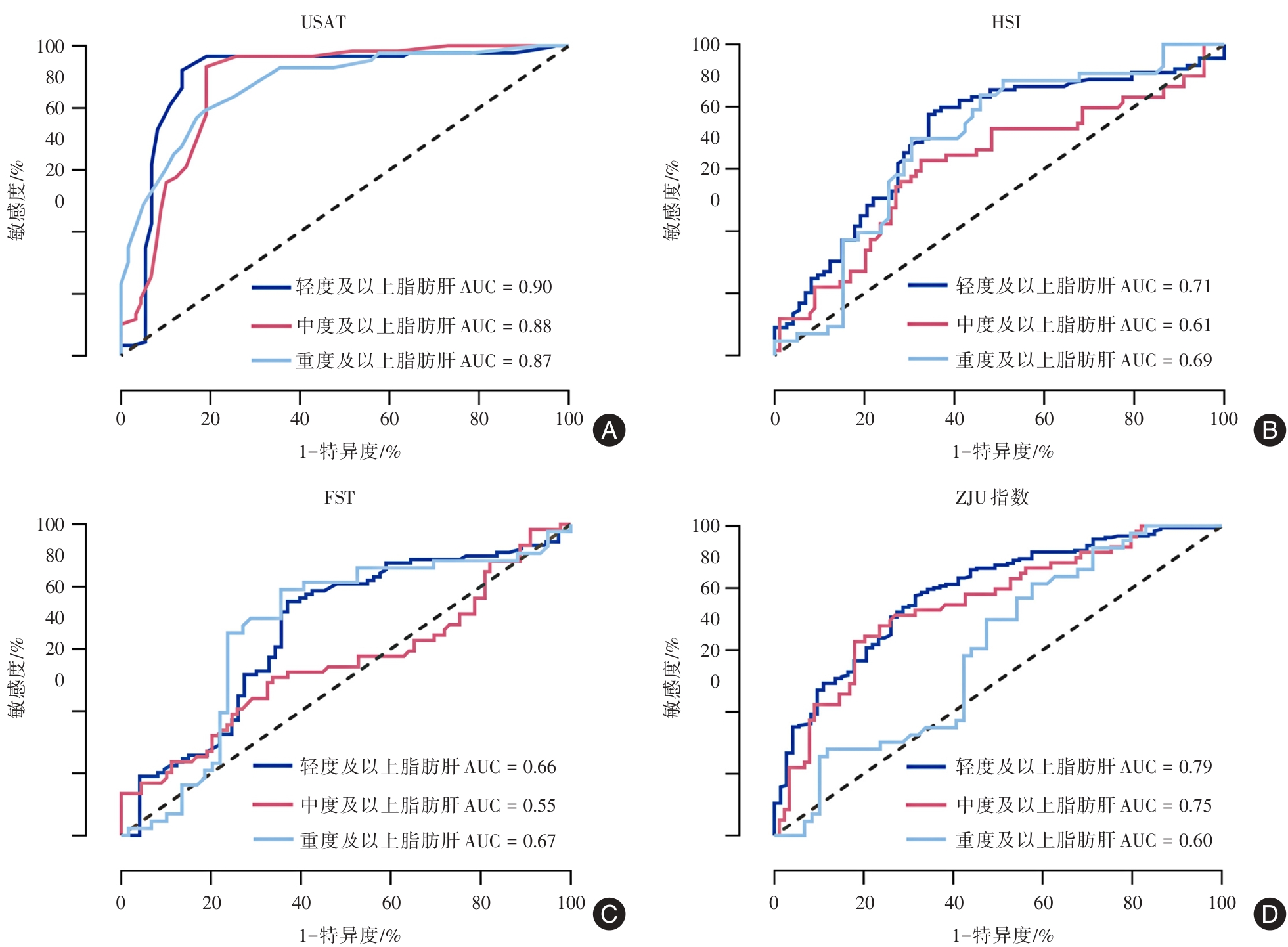 LEE J H, KIM D, KIM H J, et al. Hepatic steatosis index: A simple screening tool reflecting nonalcoholic fatty liver disease[J]. Dig Liver Dis, 2010, 42(7): 503-508. doi:10.1016/j.dld. 2009.08.002 .
