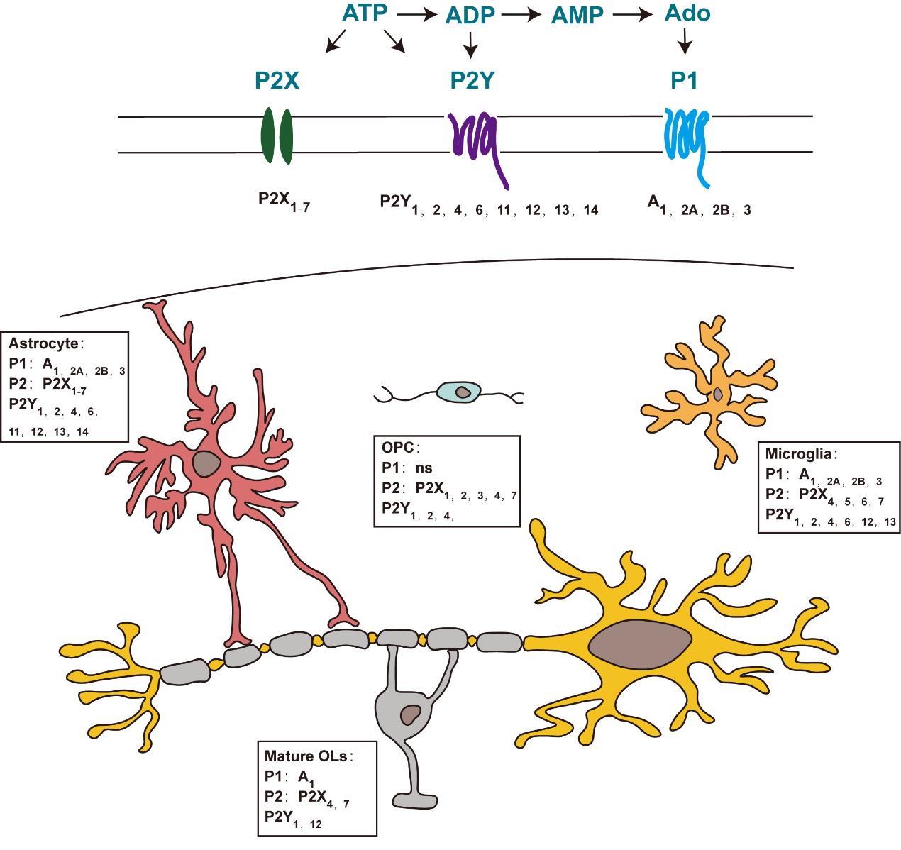 Key words: ATP, purinergic receptor, oligodendrocyte, myelination, myelin repair
