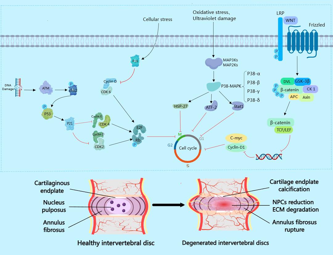 FENG C, LIU H, YANG M, et al. Disc cell senescence in intervertebral disc degeneration: Causes and molecular pathways[J]. Cell Cycle, 2016, 15(13): 1674-1684. doi:10.1080/15384101.2016.1152433