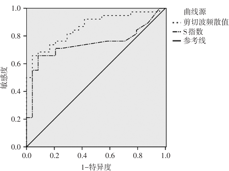 Objective To evaluate the diagnostic value of shear wave dispersion (SWD) in preoperative assessment of liver fibrosis in patients with hepatocellular carcinoma (HCC). Methods A total of 62 patients with HCC who were admitted to the hospital between January 2022 and January 2024 were included in this study. All patients underwent shear wave elastography (SWE) examination prior to hepatectomy. The extent of liver fibrosis was assessed based on surgical and pathological findings. Patients were categorized into two groups: a low?grade fibrosis group (stages S0?S2) and a high?grade fibrosis group (stages S3?S4). Baseline characteristics and liver parenchymal SWE values were compared between the two groups. Multivariate logistic regression analysis was conducted to identify factors influencing the degree of liver fibrosis in HCC patients. The diagnostic performance of SWE in preoperative evaluation of liver fibrosis was assessed using receiver operating characteristic (ROC) curve analysis. Results Among the 62 patients with HCC, pathological results indicated that there were 11, 13, 20, and 18 cases in fibrosis stages S1, S2, S3, and S4, respectively. The SWD values of liver parenchyma significantly differed among patients with varying degrees of liver fibrosis. As the severity of liver fibrosis increased, the SWD of liver parenchyma also increased (P < 0.05). Spearman correlation analysis revealed a positive correlation between the SWD value of liver parenchyma and the degree of liver fibrosis in preoperative HCC patients (r = 0.608, P < 0.05). Platelet count (PLT) was lower in the high?grade fibrosis group compared to the low?grade fibrosis group (P < 0.05). Additionally, both the S index and SWD value of liver parenchyma were higher in the high?grade fibrosis group than in the low?grade fibrosis group (P < 0.05). Multivariate logistic regression analysis demonstrated that the S index and SWD value were independent influencing factors for the degree of liver fibrosis in preoperative HCC patients (P < 0.05). ROC curves showed that the area under the curve (AUC) of the SWD value was greater than that of the S index for assessing the degree of liver fibrosis in preoperative HCC patients (P < 0.05). The cutoff value, sensitivity, and specificity of the SWD value for assessing the degree of liver fibrosis were 16.25 m/s·kHz?1, 65.79%, and 95.83%, respectively. Conclusion The SWD value of liver parenchyma is closely associated with the extent of liver fibrosis in patients with HCC and provides a highly valuable assessment of the degree of liver fibrosis.